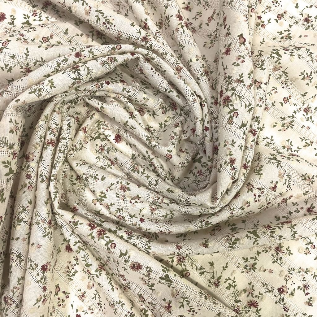 Тонкая хлопчатобумажная ткань . Хорошо впитывает влагу, комфортна при носке. Держит форму. Прекрасно подходит для пошива платьев, сорочек, одежды в романтичном стиле. Рисунок ткани позволит не только сшить изделие классической формы, но и поэкспериментировать с романтикой фасона. По длине полотна проходят полоски с имитацией вышивки в стиле ришелье.